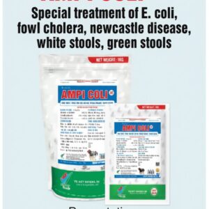 AMPI COLI 50 (or similar variations like AMPI COLI or AMPI-COLI PRO) is a veterinary medicine containing Ampicillin and Colistin, indicated for treating bacterial infections like E. coli, often associated with symptoms like white and green feces in livestock and poultry.Contact Us for Price