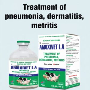 Amoxivet L.A. is a long-acting broad-spectrum antibiotic containing amoxicillin trihydrate. It is indicated for the treatment of respiratory, gastrointestinal, urinary tract, and skin infections in cattle, sheep, goats, and pigs caused by E. coli, Pasteurella, Streptococcus, and Staphylococcus species. Contact Us for Price