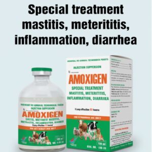 Amoxigen is a broad-spectrum antibiotic containing amoxicillin, effective against respiratory, gastrointestinal, urinary tract, and skin infections in livestock and poultry. It is used to treat diseases caused by E. coli, Pasteurella, Streptococcus, and Staphylococcus species. Contact Us for Price