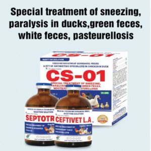 A broad-spectrum antibiotic and vitamin supplement for poultry containing Streptomycin Sulphate, Colistin Sulphate, and various vitamins (A, D3, E, B1, D. Ca Pantothenic, K, B6, B2, C, B12, Inositol).
