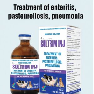 Sultrim Injection is a synergistic combination of sulfamethoxazole and trimethoprim, effective against a wide range of bacterial infections in livestock and pets. It is used for treating respiratory infections, enteritis, mastitis, metritis, and urinary tract infections caused by E. coli, Pasteurella, and Streptococcus species. Contact us for Price