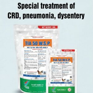 TIA 50 W.S.P is indicated for the prevention and treatment of chronic respiratory disease, infectious sinusitis, and other bacterial infections in poultry and livestock. Contact Us for Price