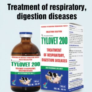 Tylovet 200 contains tylosin, a macrolide antibiotic effective against Mycoplasma, Pasteurella, and Streptococcus infections. It is used for treating respiratory diseases (CRD, pneumonia), mastitis, arthritis, and metritis in livestock and poultry. Contact Us for Price