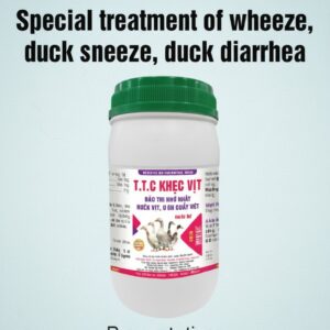 T.T.C Khẹc Vit is used for the prevention and treatment of respiratory infections, including CRD, Coryza, and pneumonia in poultry and ducks. Contact Us for Price