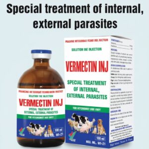 Vermectin Injection contains ivermectin, a broad-spectrum antiparasitic used in cattle, sheep, goats, and pigs for the prevention and treatment of internal and external parasites such as gastrointestinal worms, lungworms, lice, mites, and ticks. Contact us for Price