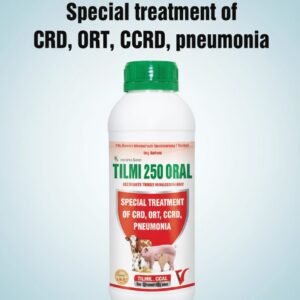 TILMI 250 ORAL is used for the prevention and treatment of respiratory and systemic bacterial infections caused by Mycoplasma, Pasteurella, and other tilmicosin-sensitive organisms in poultry, calves, and swine. It helps control chronic respiratory disease (CRD), infectious sinusitis, and pneumonia complex in livestock.