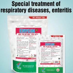 ERYCIN 20 is indicated for the prevention and treatment of bacterial infections in poultry and livestock, especially chronic respiratory disease, infectious coryza, and intestinal infections caused by erythromycin-sensitive organisms such as Mycoplasma, Streptococcus, and Staphylococcus species. It promotes better feed conversion and overall performance.