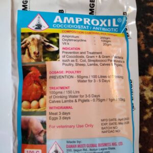 Mix 1 g per 2 liters of drinking water or 1 kg per ton of feed for 5–7 days, or as advised by a veterinarian.